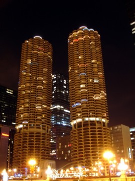 Auf Höhe des linken der beiden runden Bienenstocktürme, Marina City, habe ich die Seite gewechselt und mir mal das House of Blues angeschaut. Es liegt neben/unter dem linken der beiden Marina Türme und ist mit seiner großen blauen Leuchtreklame kaum zu verfehlen. Natürlich war noch zu, ich hab mir aber mal die Karte und so das Ambiente hier angeschaut und entschlossen am Abend hier einzukehren, zumal der Aushang draußen auch noch Livemusik für den Abend versprach.