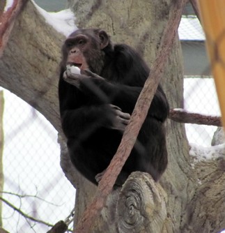 Die anderen Affen, alles auch etwas größere Exemplare, haben sich in der Zwischenzeit mit Spiel und Spaß beschäftigt. Die sind regelmäßig rausgerannt und haben Schnee reingeholt und dann damit rumgespielt. Sehr lustige Aktion.
