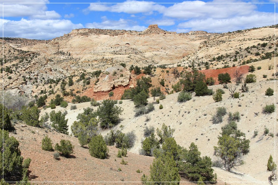 Der Parkplatz vom Escalante Town Trailhead beginnt gleich nach dem Friedhof am Ortsausgang. Hier toben sich Motocross-Fahrer auf den bunten Hügeln aus.