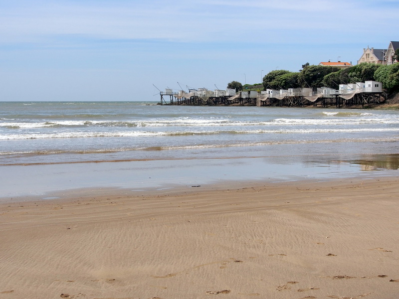 Dabei sehen wir unsere ersten „Carrelets“, das sind Holzhütten, die auf Stelzen am Strand errichtet werden und von denen während der Flut mit großen Netzen gefischt wird. Sehr malerisch und ein Wahrzeichen der Region.