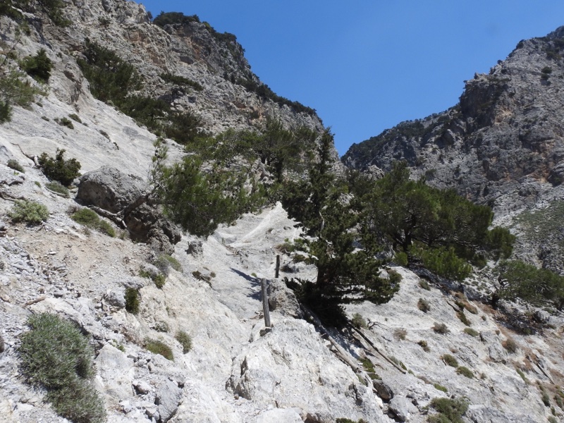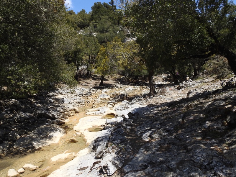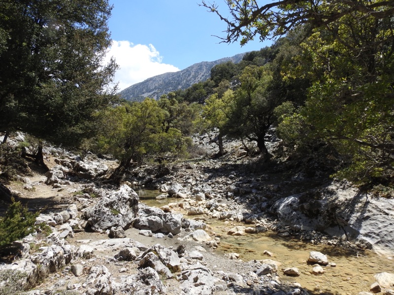 an drei Stellen halfen Holzbrücken die großen Wackersteine zu überbrücken, im Wanderführer war ein Bild davon das spektakulär aussah, in der Realität war es aber völlig harmlos. Hier haben wir auch eine geführte deutsche Wandergruppe getroffen die schon auf dem Rückweg war. Solche Gruppen haben wir heute und den anderen Tagen mehrfach getroffen, es gibt wohl viele organisierte Wanderreisen nach Kreta.