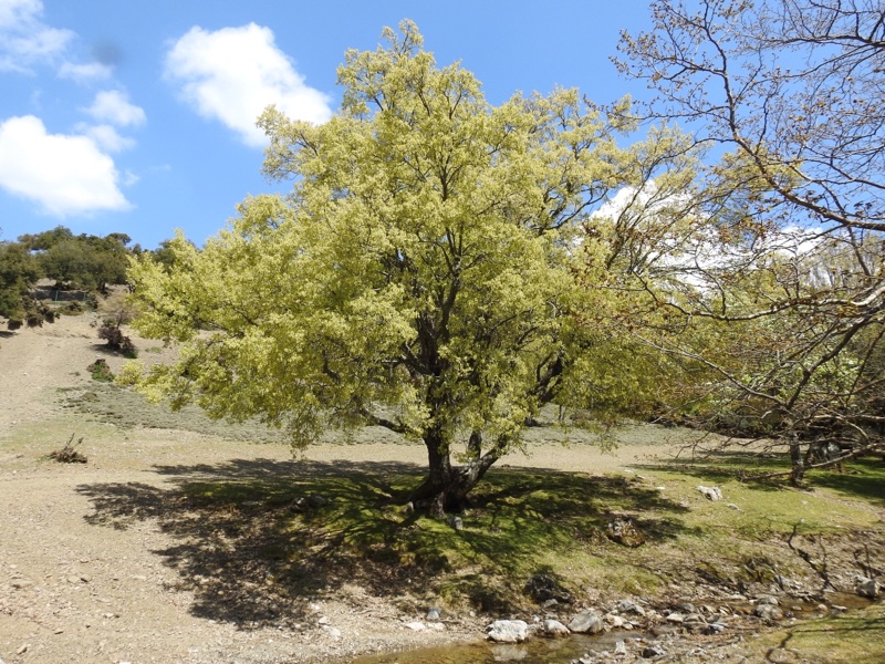 Hinter dieser Biegung waren Bänke unter einer riesigen Kiefer, zwei deutsche Wanderinnen saßen schon da wir haben uns dazugesellt, sie waren aus Oldenburg und wir haben uns nett unterhalten. In der Kiefer waren hunderte Bienen, der gesamte Baum hat gesummt. Das ist uns in Kreta immer wieder aufgefallen wieviele Bienen es hier gibt, man hat auch oft Bienenstöcke gesehen (und meistens 20 oder 30 nebeneinander).