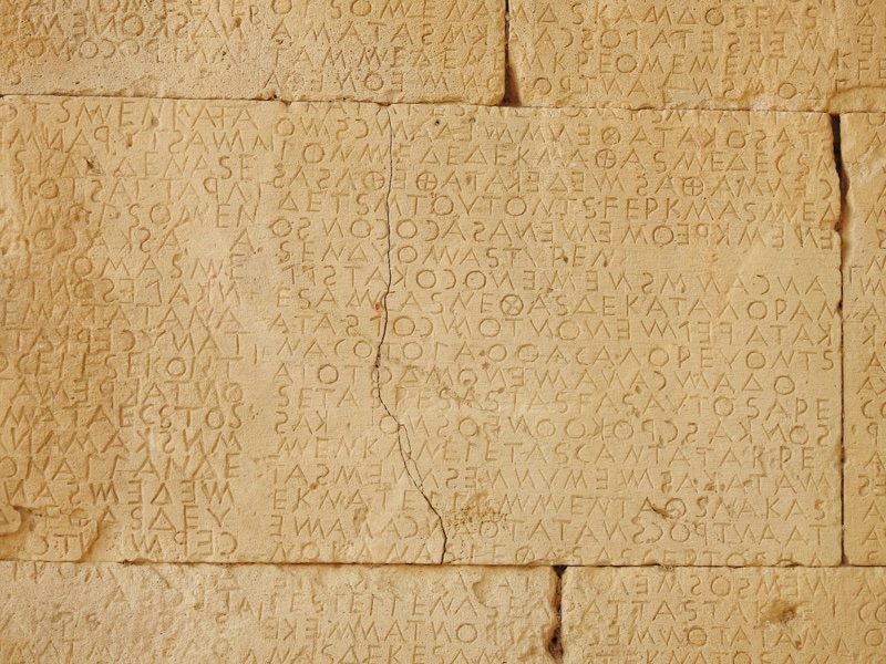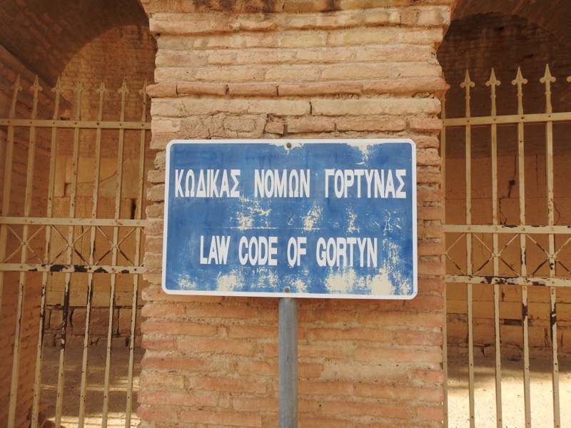 in die Rückwand ist der Gesetzescode von Gortyn eingraviert, 500 vor Christus, der früheste bekannte Gesetzestext in Europa!