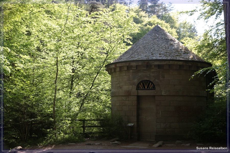 The Hermitage ist ein Waldstück am River Braan, das im 18. Jahrhundert von den Dukes of Atholl als eine Art Lustgarten angelegt wurde. Heute wird es vom National Trust verwaltet. Kein Eintritt, nur eine Parkgebühr von 2 GBP. Verschiedene Wanderwege führen durch das Gelände ( und der weiteren Gegend). Wir nehmen den am Fluss entlang bis zum steinernen Pavillion Ossian Hall. Im Wäldchen sind auch Douglastannen gepflanzt, die der schottische Botaniker David Douglas (daher der Name) aus Nordamerika mitbrachte. Beim Fotografieren nicht die größten erwischt, warum auch immer