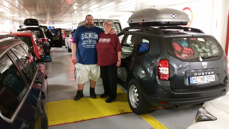 Und schon ging es los. Erst wurden ein paar Fahrzeuge der nebenliegenden Lane aufgerufen und dann war unsere dran. Ich war schon voller Panik, ob wir denn genügend Platz zum Aussteigen haben würden und ob wir unsere Taschen schnell genug aus dem Fahrzeug bekämen. Wir hatten extra so gepackt, dass wir uns die Sachen nur schnell schnappen mussten und nicht noch Kramen mussten.  Gabis Erfahrungen auf der Norwegenfähre haben bei mir beinahe eine Panik ausgelöst. Wir hatten also jeder sein eigenes Boardgepäck. Letztlich hatten wir aber alle Zeit der Welt, denn soo eng wurde nicht geparkt. Sogar XL-Tours kamen (fast) bequem aus dem Wagen und an den Kofferraum ganz ohne Probleme.