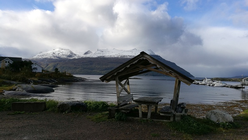 Auf der weiteren Fahrt kamen wir an den Rastplatz Austnesfjorden. Hier kann man ein paar Meter einen Hügel hochgehen, von wo man eine fantastische Aussicht hat. Das sind die Ausblicke, die wir an Norwegen so lieben.