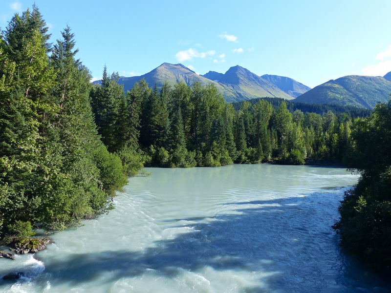 Weiter gehts mit Blicken auf den Kenai River. Dann zieht es wie vorher gesagt zu. Aber noch nicht so schlimm. Von daher biegen wir nochmal kurz in die Gegend des Portage Glaciers ab.