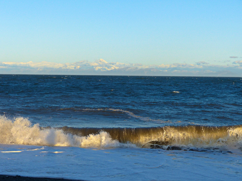Also am Anfang noch die Sonne genießen. Es geht wieder anfangs die Küste entlang mit herr,ichen Ausblicken auf die schneebedeckten Berge.