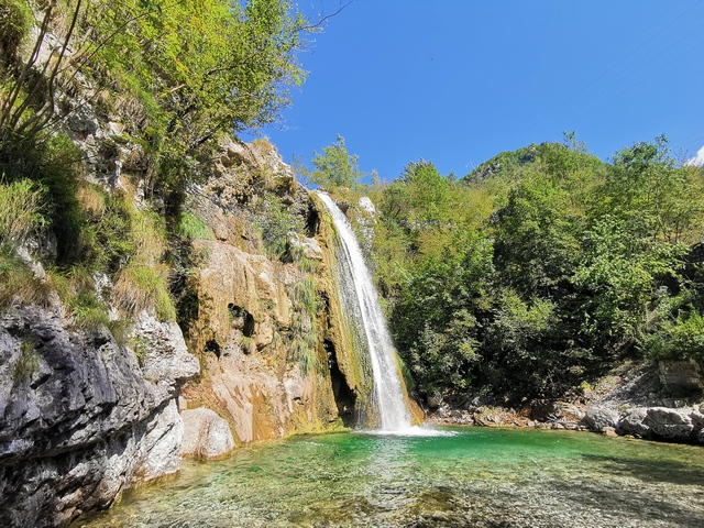 Andy war das erste Stück auf diesem Weg unterwegs, den eigentlichen "Ponale-Weg" sieht man links am Berg.