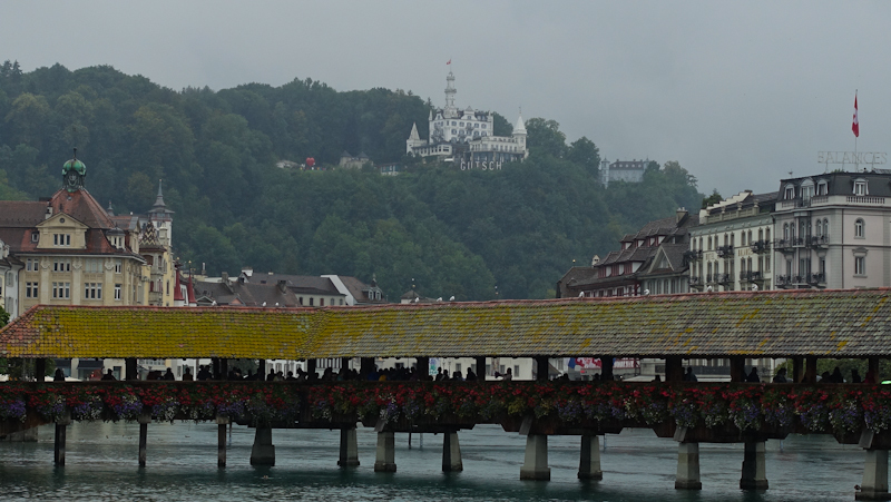 Wir fahren nach Luzern und zurück an den Vierwaldstättersee. Wahrzeichen ist die überdachte Kapellbrücke.
