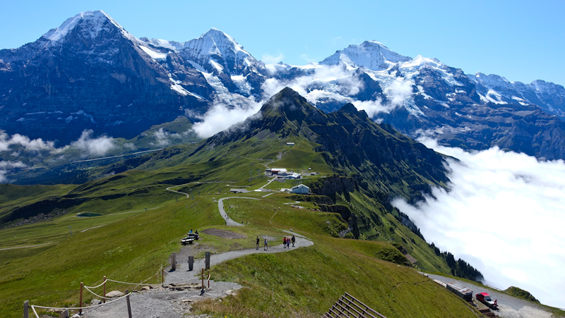 Die Gletscherzunge windet sich hinauf zum Jungfraujoch, das wir schon von der Nordseite vom Männlichen gesehen hatten.