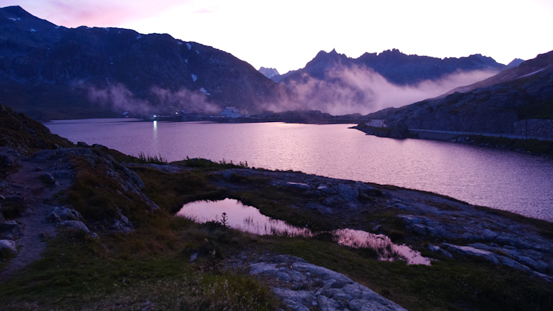 Kurz nach Sonnenaufgang verlassen wir den Grimselpass ...