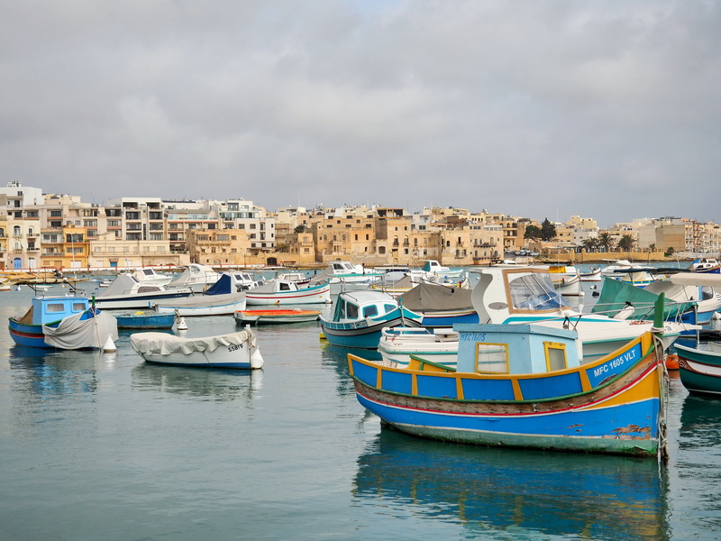 Tatsächlich steigen dann wie ich auch alle andere Touristen am Hafen von Marsaxlokk aus. Der Anblick der bunten Fischerboote vor den weißen Häusern ist sehr hübsch, die Strandpromenade ist mir aber zu touristisch, ein Restaurant reiht sich an das nächste und es gibt ein paar Stände mit Essen und Souvenirs.