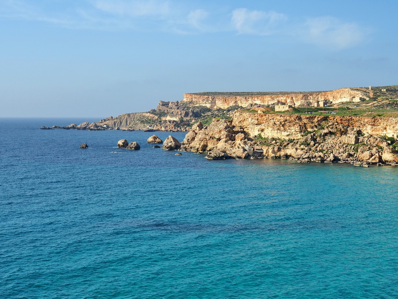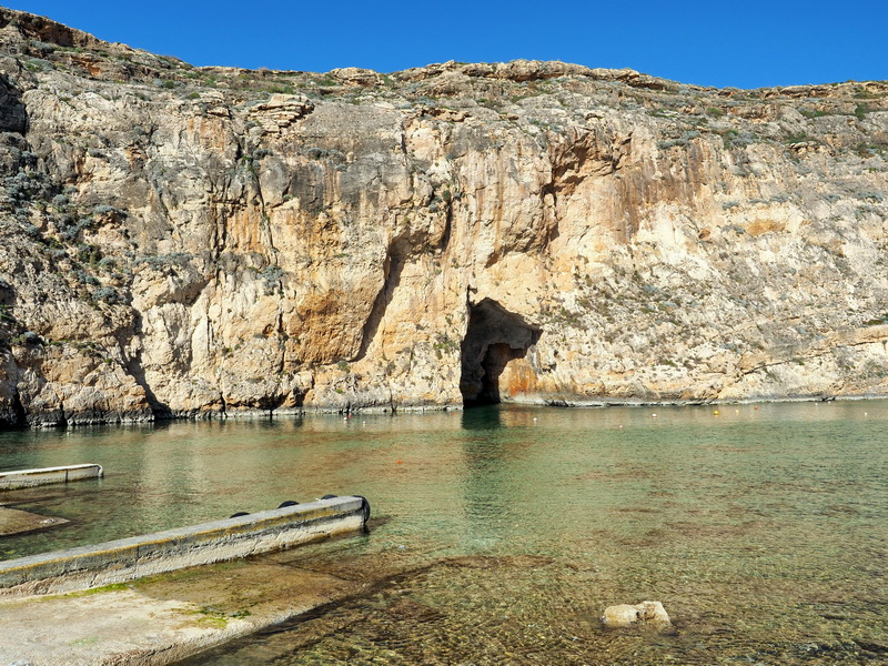 Um mein nächstes Ziel zu erreichen muss ich den Bus von hier zum Flughafen nehmen und dort umsteigen. Da der Bus in Birzebugga vom Flughafen kommend eine Schleife fährt und dann wieder zurück, kann ich nicht herausfinden, an welcher Haltestelle ich zusteigen muss. Nach einer kurzen Irrfahrt erreiche ich dann aber mit Hilfe eines sehr freundlichen und hilfsbereiten Busfahrers und eines ebenso hilfsbereiten schwarzen, jungen Flüchtlings (auf Malta sehr zahlreich) den richtigen Bus. Am Flughafen wartet der nächste Bus schon mit dem ich – nun wieder in Gesellschaft zahlreicher anderer Touristen – an die Südwestküste zur Blue Grotto fahre.