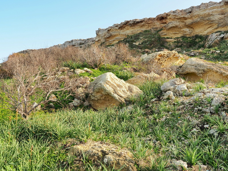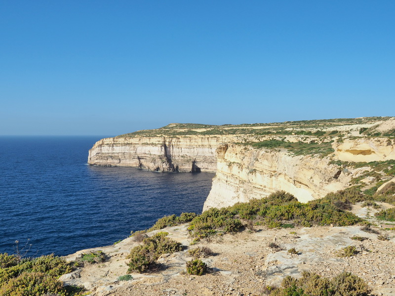 Ich schaue mir noch den ein paar hundert Meter entfernt gelegen Mnajdra Tempel an und spaziere danach ein wenig über das Gelände, die Misqa Tanks, in den Fels gehauene Vertiefungen, die vermutlich als Wasserspeicher dienten, die sich nicht weit von den Tempel entfernt befinden sollen, finde ich nicht (warum man da nicht einen Wegweiser aufstellen kann, verstehe ich nicht).