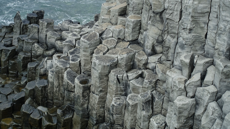 Kurz danach erreichen wir Hofsos. Direkt hinter dem Schwimmbad kann man einen Weg hinab zu einem Aussichtspunkt auf die Küste folgen und die vielen Basaltsäulen bewundern, ...