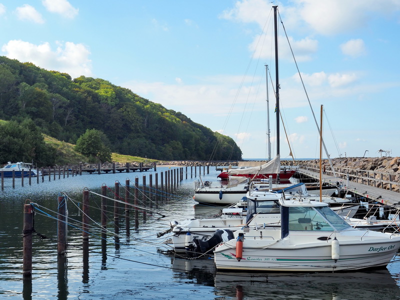 Dann führt der Weg bergab in den Ort Lohme hinein. Ich spaziere hinunter zum netten kleinen Hafen, für den ich mir heute auch mehr Zeit nehme als letzte Woche und kehre dann gegen 13.30 Uhr im Café «Niedlich» ein. Aussicht, Milchkaffee und Apfelkuchen sind wieder wunderbar.