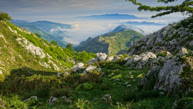 Die natürliche Grenze zu der im Süden gelegenen Region Kastilien und León bilden die Gipfel des Kantabrischen Gebirges, zu dem im Osten von Asturien die Picos de Europa zählen. Die Picos sind zum großen Teil als Nationalpark geschützt und gehören mit ihren bis über 2.600 Meter hohen Bergen, die zu den schönsten Berglandschaften Spaniens. Die unmittelbare Lage des Hochgebirges in direkter Nachbarschaft zum Meer macht den besonderen Reiz aus. Die Picos de Europa sind ein einzigartiges Gebiet zum Wandern durch schöne Karstlandschaften und tiefe Schluchten vorbei an malerischen Bergseen.
