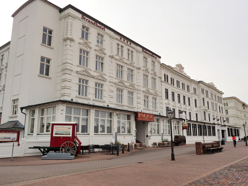 Teils an der Strandpromenade entlang, teils durch den Kurpark (eher ein kleines Wäldchen) gehe ich in Richtung nördliches Ende der Strandpromenade. Am zentralen Teil war ich gestern schon zum Sonnenuntergang, hier stehen neben einigen Bausünden auch noch die schneeweißen Hotels vom Beginn des letzten Jahrhunderts.