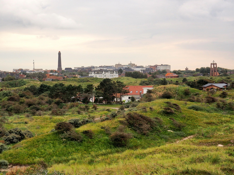 Nach der Mittagspause geht es weg vom Meer, durch die Dünen in Richtung Zentrum. Erster Stopp ist die Aussichtsdüne Norddüne. Von hier hat man einen schönen Blick auf die «Skyline» des Orts mit den verschiedenen Türmen.