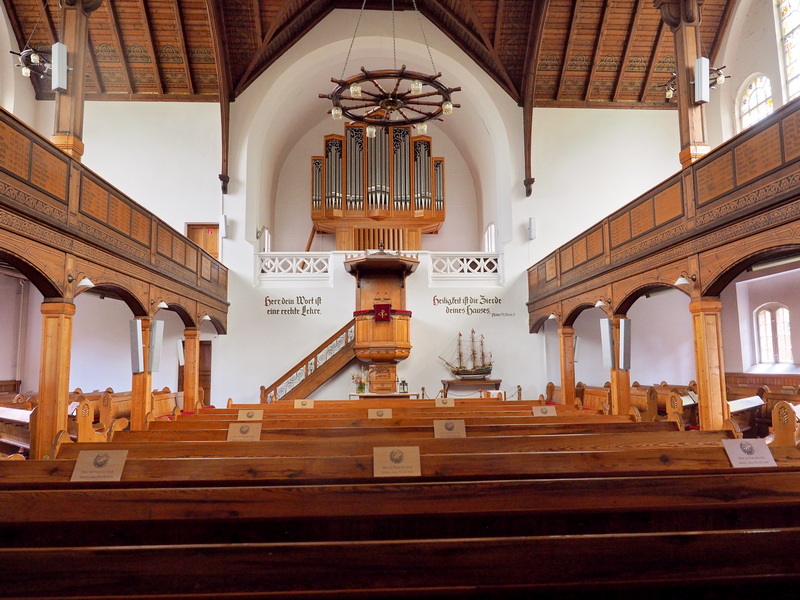 Weiter geht’s zur katholische Kirche Maria Meeresstern, diese wurde im eigentlich evangelischen Norddeutschland 1880 für die Inselurlauber errichtet (und auch von ihnen finanziert), nach dem Zweiten Weltkrieg kamen viele katholische Flüchtlinge auf die Insel, die Kirche wurde daher 1954 vergrößert.