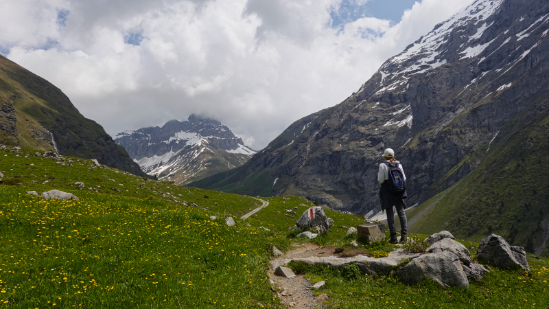 Oben angekommen geht der Blick in die Bergwelt Engelsbergs.