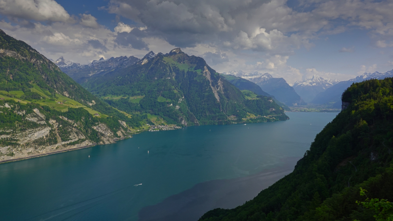 Von oben am Fronalpstock hat man einen herrlichen Blick auf die Seenlandschaft des Vierwaldstätter- und Urnersees...