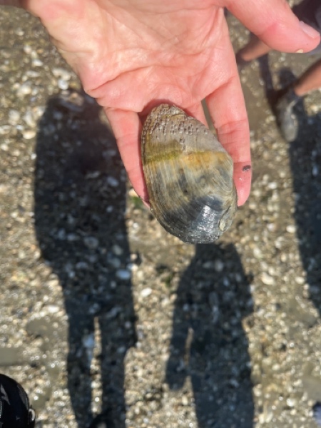 während er dann weiter erzählt hat konnten wir zuschauen wie sich die Muschel wieder in den Sand eingegraben hat