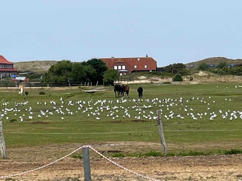 Im Restaurant Seestern saßen wir draußen in der schönsten Sonne. Es gab diverse Fischfilets mit Bratkartoffeln und Salat (mit Queller), der Salat wieder mit der gleichen Fertigsoße wie gestern, Gemüse stand nicht zur Auswahl. Am besten ißt man Fisch mit Fisch, der ist hier wirklich lecker