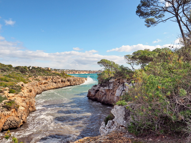Eigentlich hat die Cala Pi wunderbar türkisfarbenes Wasser, leider verhindert der Sturm, dass ich diesen Anblick erlebe, das Wasser ist schlammfarben und kommt in großen Wellen in die langgezogene Bucht hereingebraust.