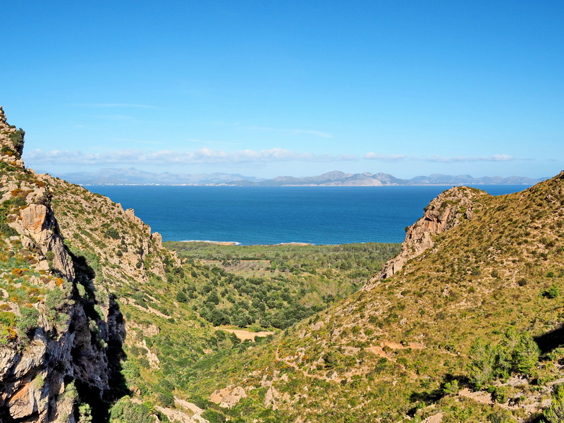 Der Weg ist ab hier teilweise sehr schwer zu finden, es gibt zig Pfade, als Markierungen sind nur hin und wieder Steinmännchen zu sehen. Ich erreiche nach einigen Irrwegen dann die Nachbarbucht von Cala Pi, die Cala Beltrán. Auch hier ist im hinteren Teil das Wasser schlammfarben und hat hohe Wellen.