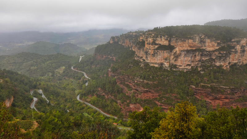 Wir fahren nach Norden zunächst zur Santuari de la Mare de Déu de Montserrat. Der Bau dieses prächtigen Heiligtums, das vom Architekten Josep María Jujol entworfen wurde, begann im Jahr 1925, aber aufgrund von Geldmangel und dem Bürgerkrieg wurden die Arbeiten lahmgelegt, erst 1984 wieder aufgenommen und 1999 abgeschlossen. Die kunstvolle Kirche, erinnert von weitem an die Sagrada Familia.