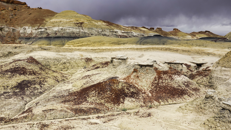Was diese Fossilien im Petrified Forest zudem von Holzversteinerungen aus anderen Gegenden unterscheidet, ist ihre fantastische Färbung, die bei diesen Hölzern auffallend rot, gelb, braun und schwarz ist.