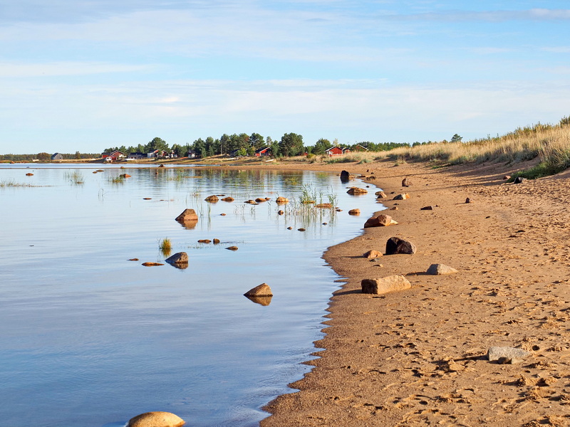 Schon gleich hinter Kalajoki hat Regen eingesetzt, der weiter anhält, dennoch möchte ich zumindest eine kurze Pause an einem weiteren Strand machen, dem Fäboda Strand beim Ort Jacobstad (an der finnischen Süd- und Ostküste leben viele schwedisch-stämmige Finnen, die Gegend ist daher zweisprachig, die Ortsnamen sind immer auf Finnisch und Schwedisch angeschrieben).