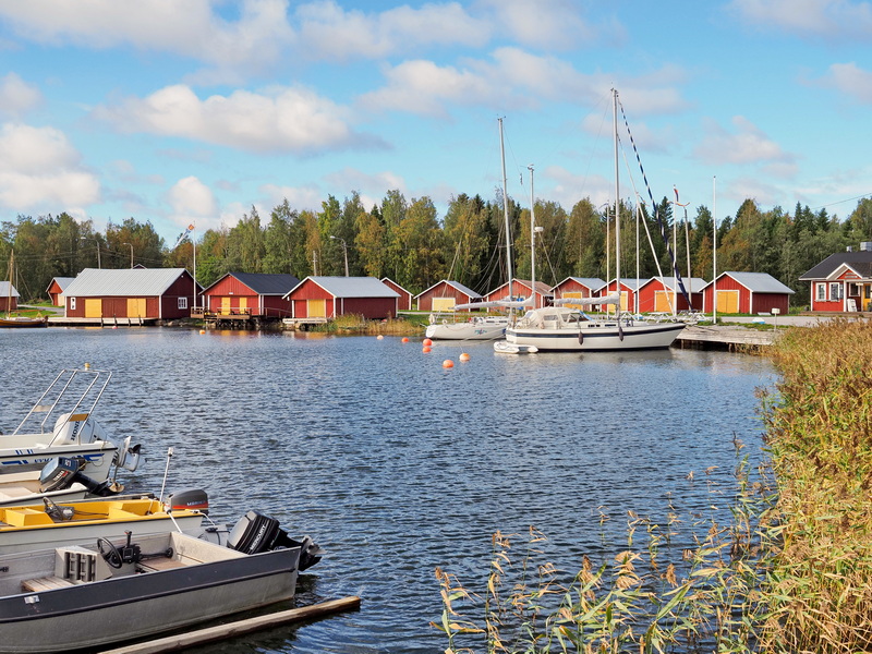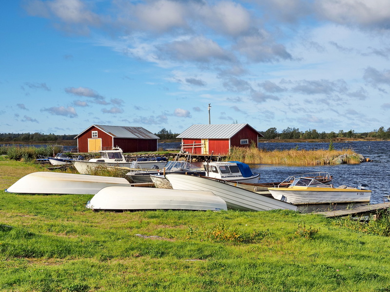 Nächster Stopp etwa zwanzig Fahrminuten vom Besucherzentrum entfernt ist der Hafen von Replot (sowohl der Ort als auch die Insel heißen Replot). Sehr idyllisch ist es hier mit den roten Bootshäusern und Hütten und den Segelbooten und kleinen Jachten, die hier ankern. Ich bin ganz alleine hier, im Sommer ist das aber durchaus ein beliebtes Touristenziel, dann haben auch diverse kleine Geschäfte in den ehemaligen Bootsgaragen geöffnet.