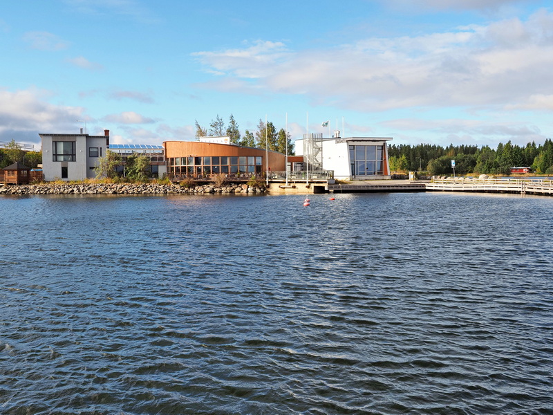 Direkt nach der Brücken - Überquerung biege ich nach rechts ab, dort befinden sich ein Restaurant und das Besucherzentrum zum Weltnaturerbe Kvarken mit einer kleinen Ausstellung und Souvenirshop. Beides kann auch mit dem Boot erreicht werden, Liegeplätze gibt es auf der Wasserseite direkt davor.