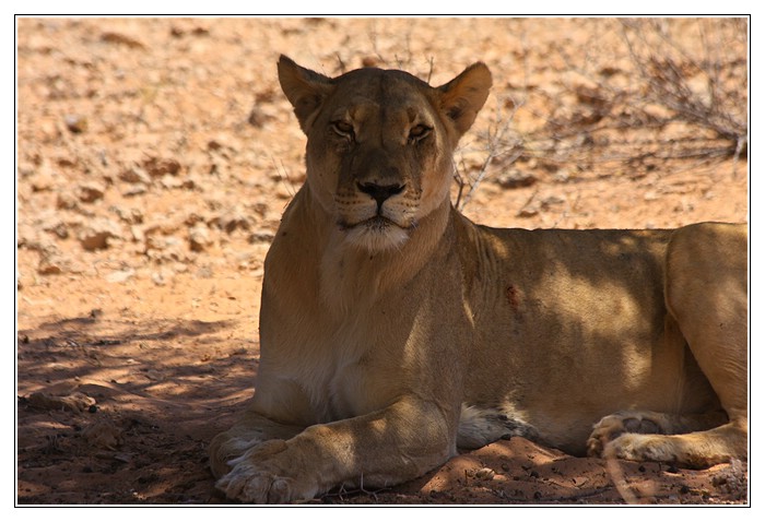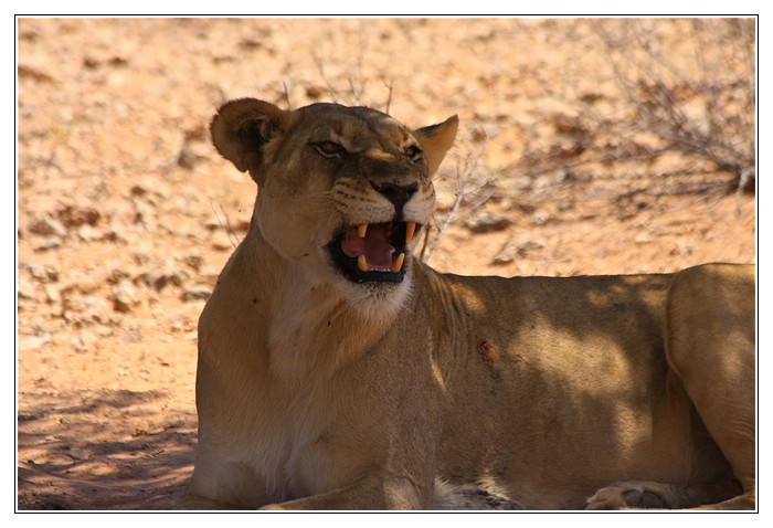 Eine Stunde später haben wir genug und geben auf (jedenfalls für den Moment) und fahren zum Camp Mata Mata. Wir können ja auf dem Nachmittags- Game Drive nochmal bei Craig Lockhart vorbeisehen.