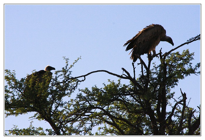Natürlich sehen wir auch wieder eine Menge Antilopen, Strauße, Vögel und die Geier warten schon ....