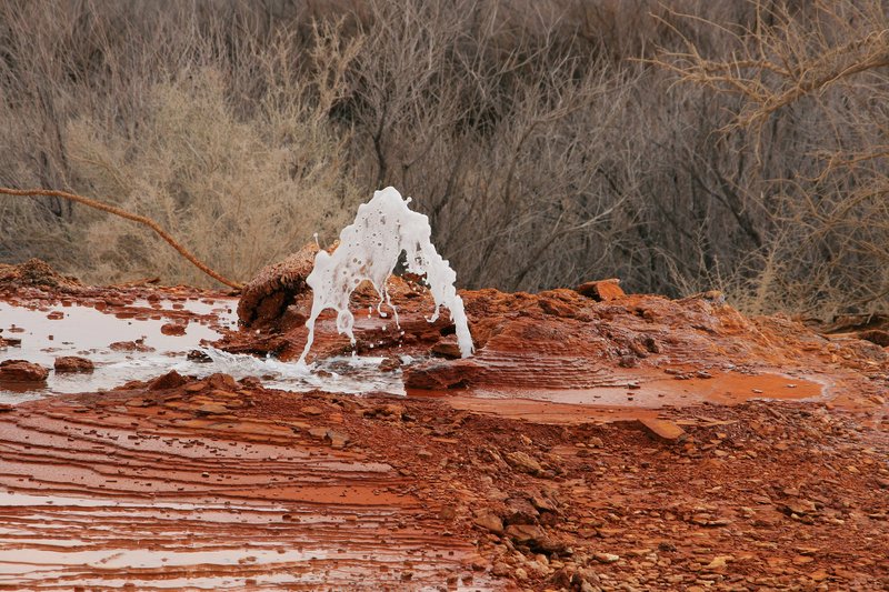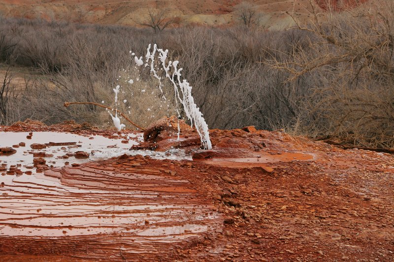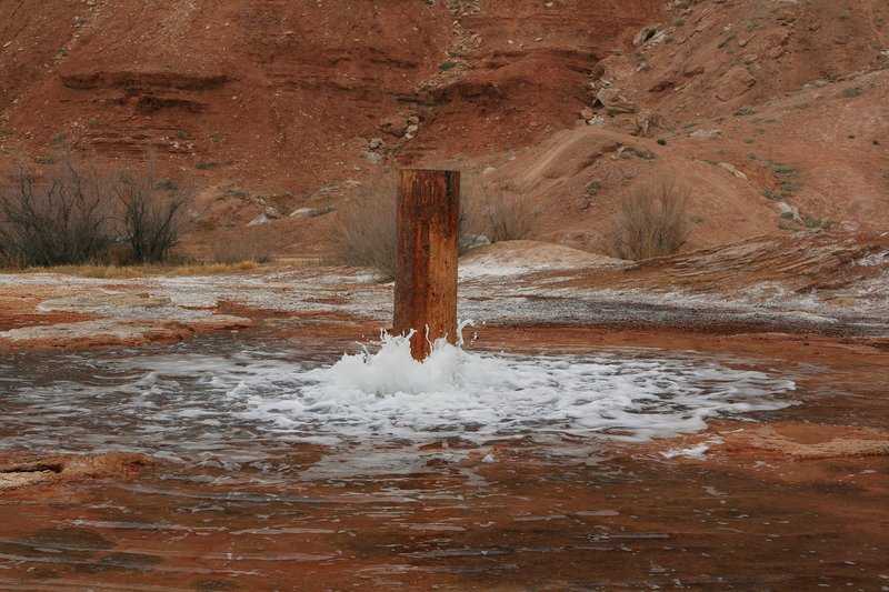 Glücklicherweise ist Snowflake angesprungen und wir fuhren die Green River Road nonstop weiter bis zum Chaffin Ranch Cold Water Geysir . Welch ein Glück, denn er war gerade aktiv.