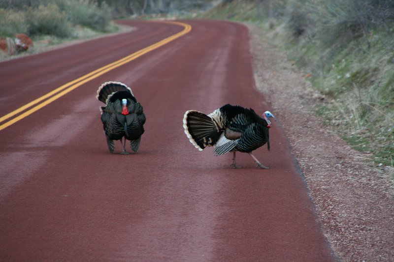 Wir waren so früh im Zion, dass nicht mal das Kassenhäuschen vom East Entrance besetzt war. Außer uns waren nur noch diese "Hühner" unterwegs: