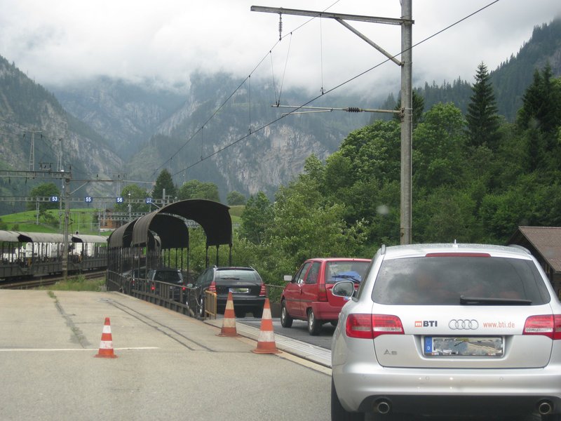 Einer unterirdischen Standseilbahn, die uns auf 3500 m brachte. Hier hätte man ein herrliches Alpenpanorama mit Ausblick vom Drehrestaurant auf alle Viertausender. Unsere Aussicht war allerdings so: