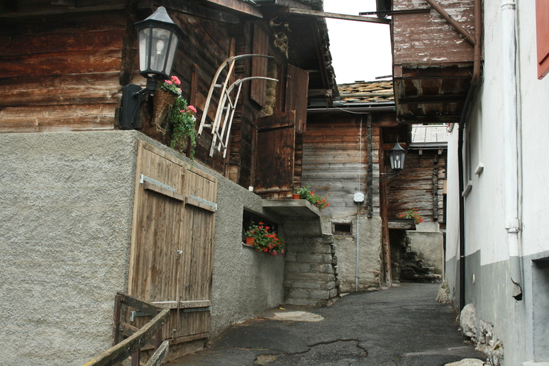Typische wallisische Scheunen auf Steinstelzen zum Schutz vor Nagetieren.