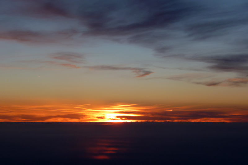In den Schlafanzug hüpfe ich nach dem Start auch ganz schnell und mache noch ein letztes Bild von der untergehenden Sonne.