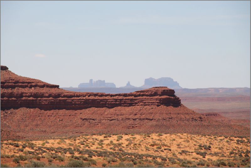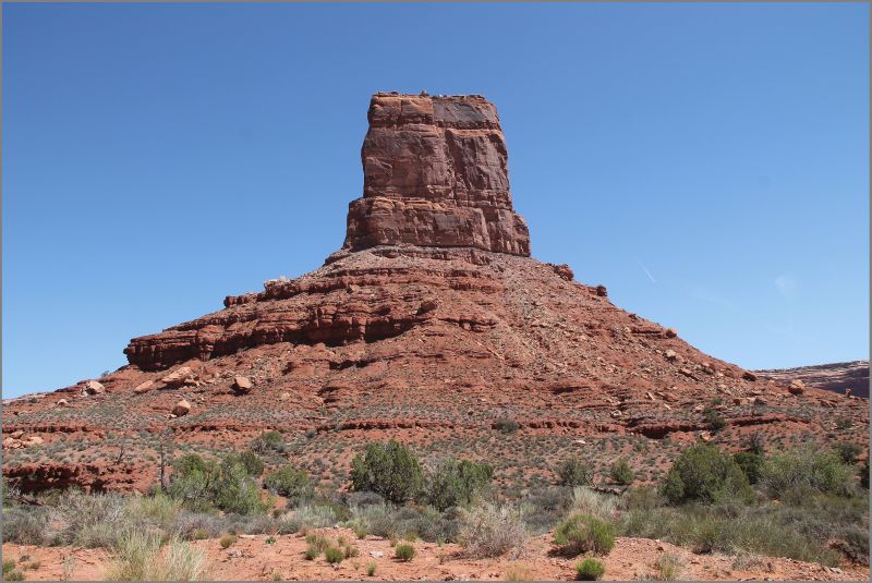 Der King thront 40 Meilen südlich von Farmington in der Nähe der Ah-shi-sle-pah Wash. 10 Meilen davon sind eine breite Schotterpiste, doch dann muss man ca. 1 Meile bis zur Parkmöglichkeit am Windrad durch tiefe Spurrinnen fahren, die der Spoiler des Traverse fast nicht verkraftete.