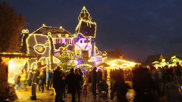 Die Gebäude von Hundertwasser sehen immer toll aus mit der Weihnachtsbeleuchtung