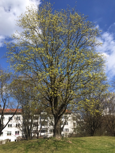 beim Mittagsspaziergang schaue ich mir die Bäume ganz genau an, jetzt wo die Bäume ausshlagen ist es ja draußen herrlich und Gott sei Dank ist unser Stadtviertel sehr grün