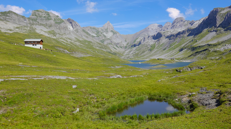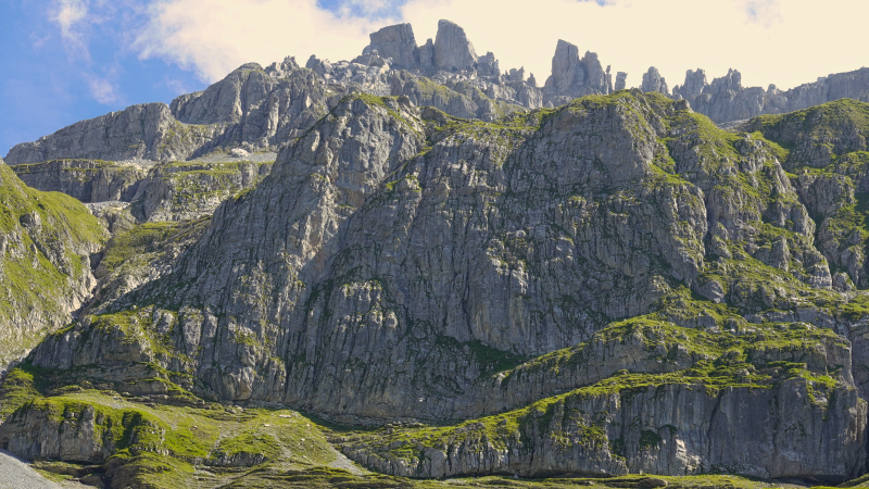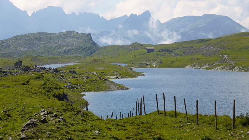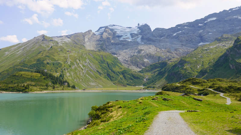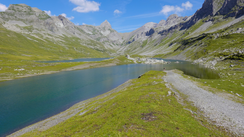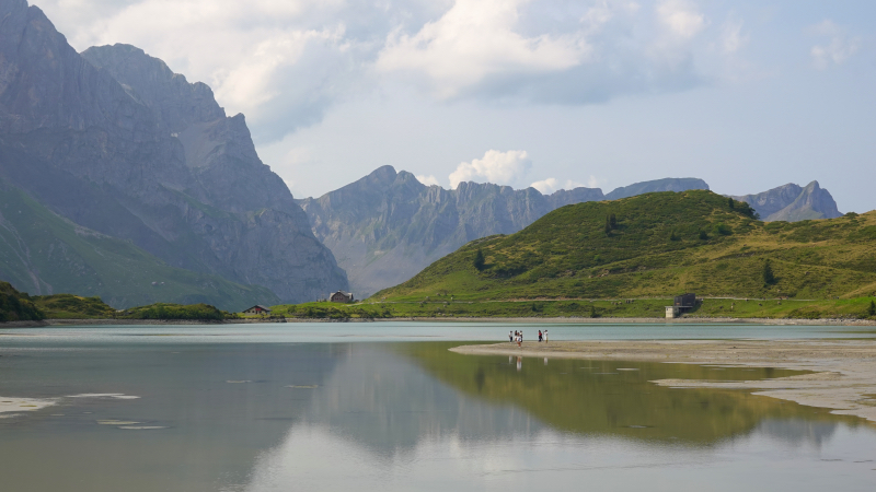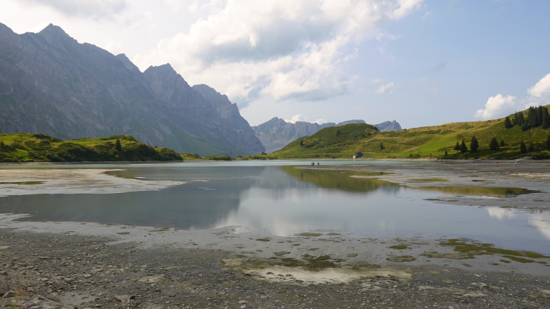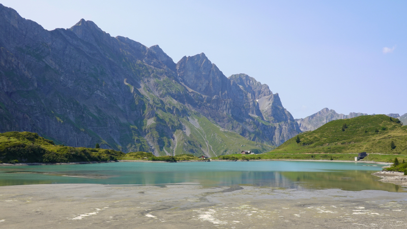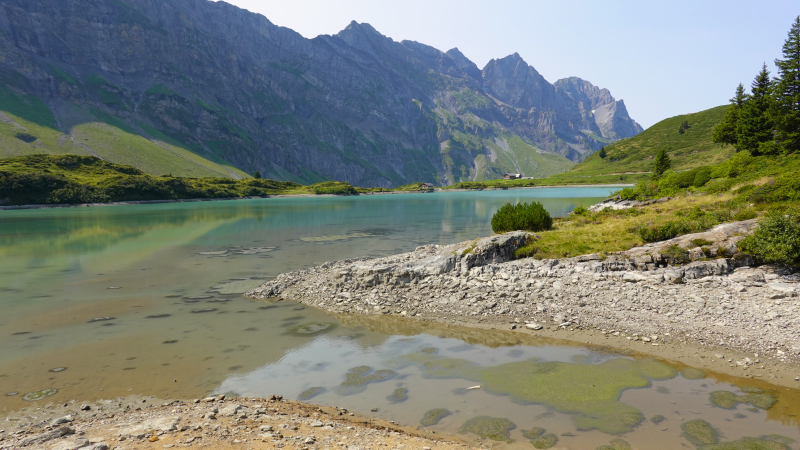 Der der 5km lange Klöntalersee ist ein durch eine Sackung von der südlichen sowie einen Bergsturz von der nördlichen Talflanke entstandener Natursee, der mit einem Damm zu einem Stausee aufgestaut wurde.