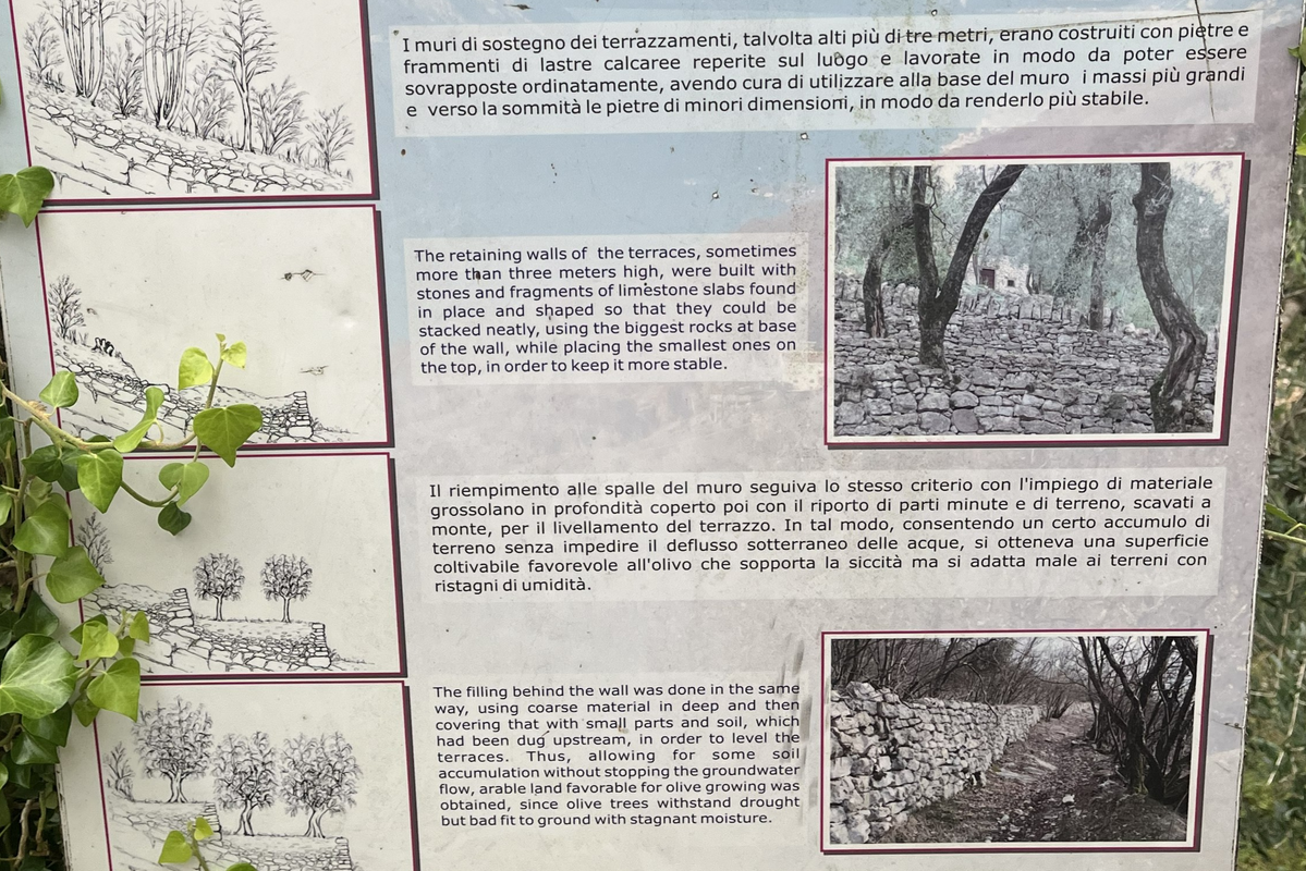 ab hier ging der Weg durch Olivenhaine und es gab viele Erläuterungstafeln