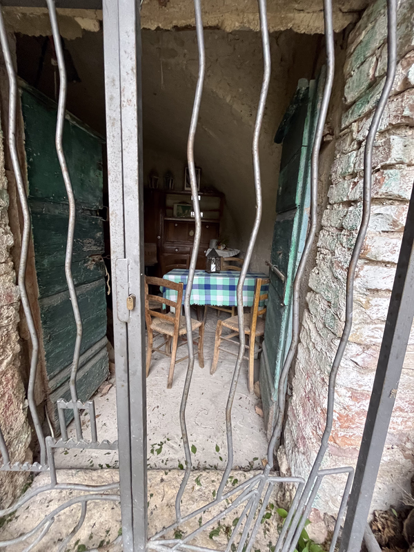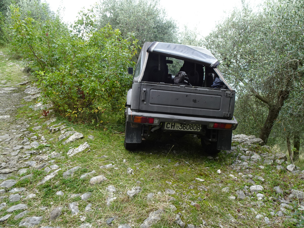 dieser Fiat Panda ist deutlich breiter als der Wagen den wir unterwegs gesehen haben, wie der wohl hierher gefahren ist? Laut Reisführer sind ein oder zwei Häuser bewohnt, gesehen haben wir aber niemanden.