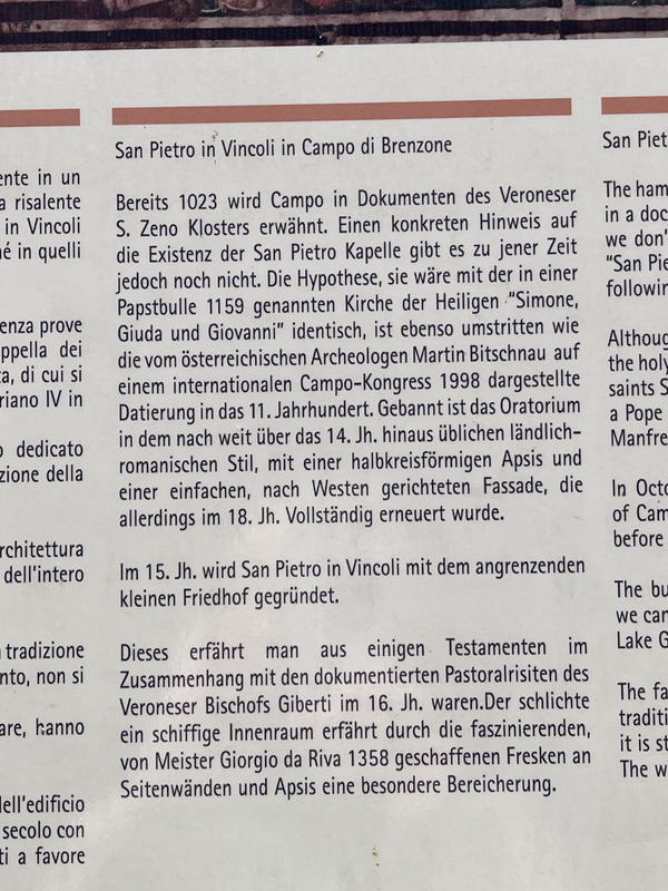 in der Kirche waren wir auch noch kurz drin, sie ist einer Heiligen gewidmet die wohl aus Brenzone stammt, ganz verstanden haben wir es nicht, die Beschilderung war nur auf italienisch.
